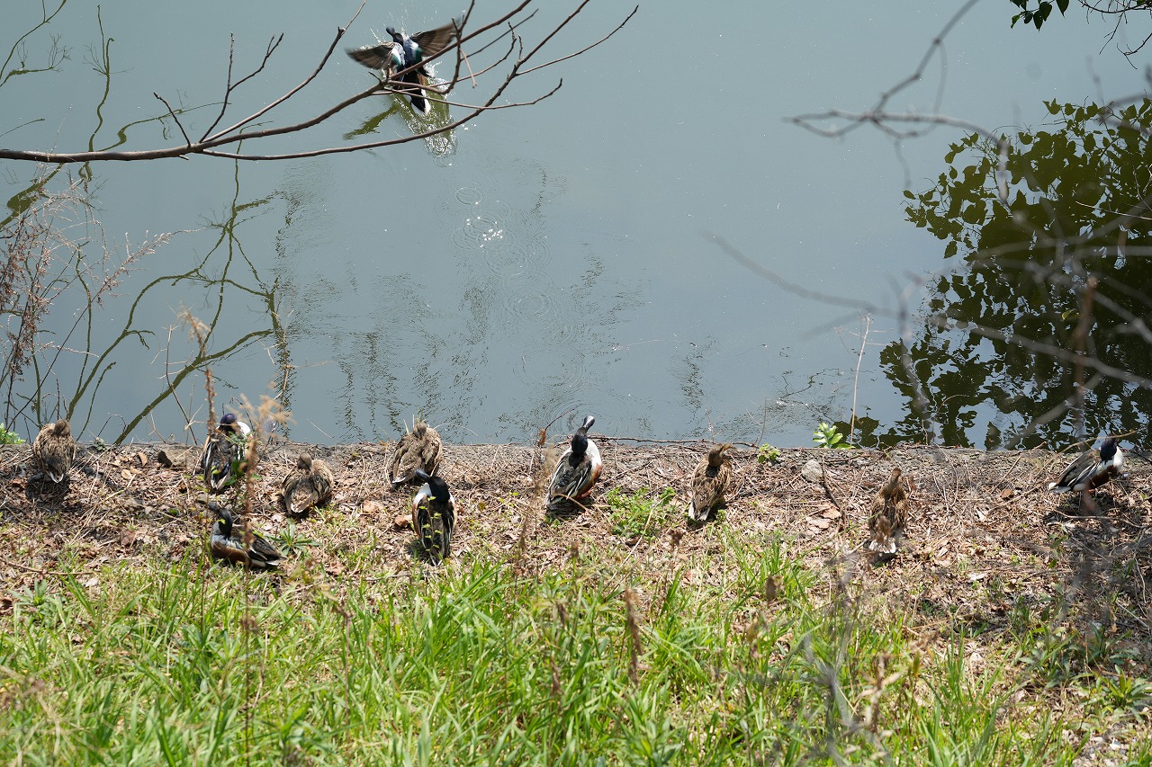 外濠のカモもお花見??のように満席でした